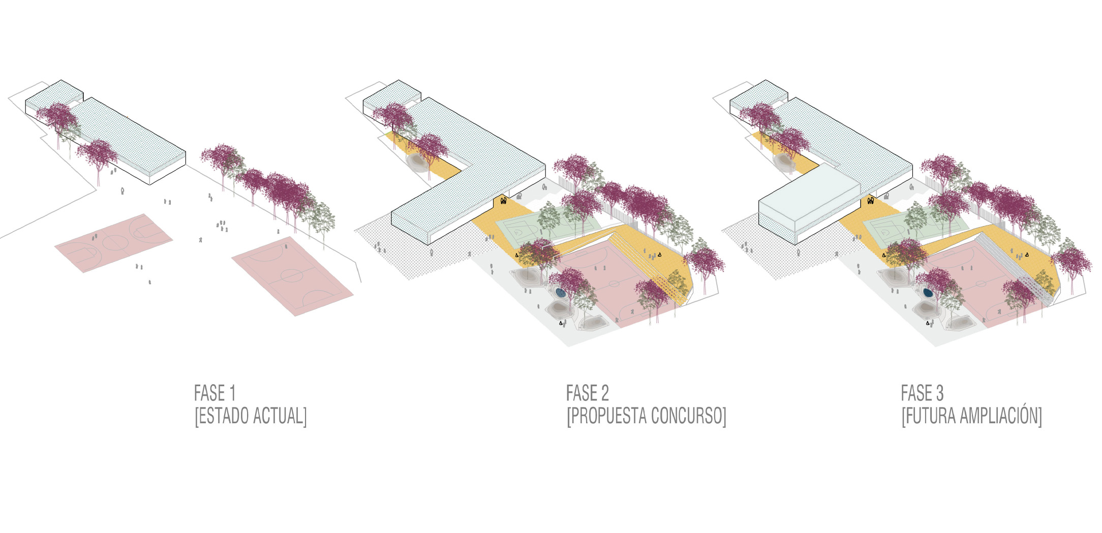 Es fundamental entender las secuencias establecidas de los diversos espacios que ofrece el proyecto: aula-patio privado-espacio intermedio-zona de juegos- ciudad, que pretende aportar un espectro de posibilidades relacionales y que indaga sobre el concepto antropológico del lugar y de la conquista por parte del usuario de diversas tipologías espaciales y relacionales.