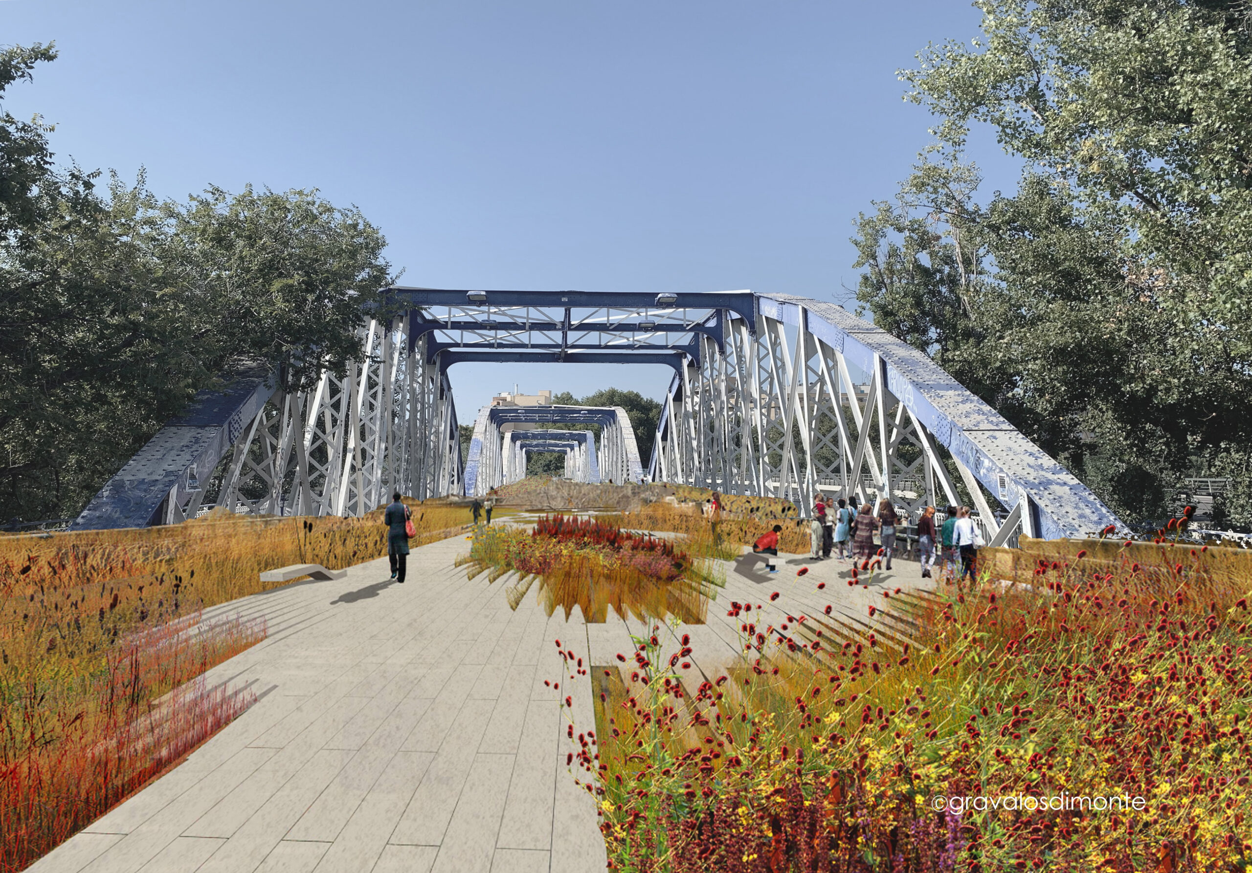 puentes, que combina renaturalización, vegetación y materiales permeables para conformar un